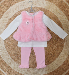 BABY GIRLS FAUX FUR GILET, TOP & LEGGING OUTFIT (1-5 YEARS)